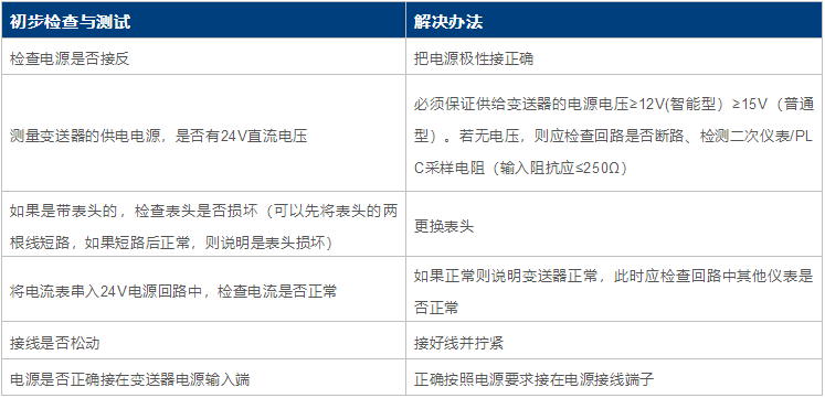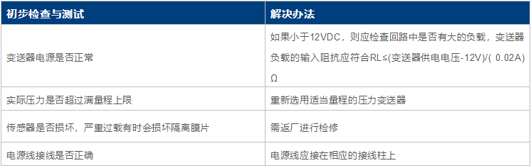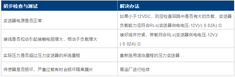 您當(dāng)前的位置:江蘇天信儀表有限公司 >> 新聞資訊 >> 4~20mA壓力變送器的一般故障及解決辦法