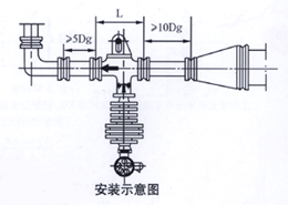 ?2?流量計(jì)必須安裝在一段水平直管線上,其指示器必須位于管線之下,前后直段管長度不少與示意圖標(biāo)注的要求。另外蒸汽必須按本體殼上箭頭指示方向流入。