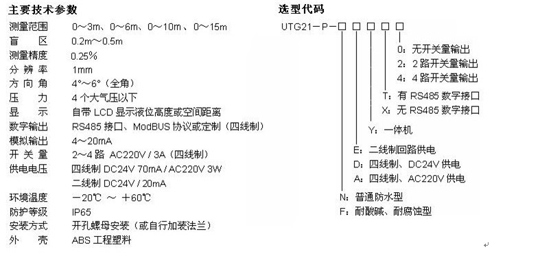 三、TX系列超聲波液位計選型表